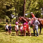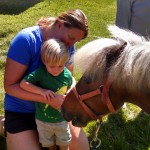 We start ’em early!! Here’s Mason learning how to feed the horses and then visiting with each to say hello. His favorite: Chevy!!!!!!