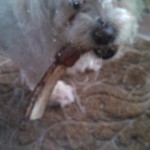 We never give Mav REAL meat bones to chew on, but I just couldn’t resist. So, with supervision, he got to chomp on this baby for a bit. Talk about a HAPPY DOG!!!!