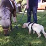 We got to meet Gus at the Farmer’s Market on Saturday. Here he is checking out Chevy. Wasn’t so sure about that…..