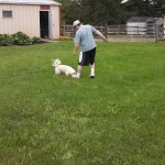 When Maverick wants to play, he grabs your foot while you’re walking! Good thing he’s light enough that you can just keep going and drag him with you! LOL!