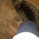 this not-so-little kitty showed up last night for some grub. Very talkative and friendly. But he/she is SOMEbody’s baby…