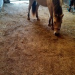 Since it was POURING on Saturday, I let the horses out in the barn to walk around. Delilah found EVERY stitch of hay there was on the floor!