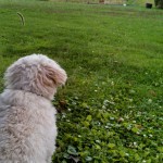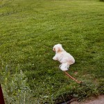 Patty’s the lucky one that gets to go out on the new field with all the tall grass. Something in the field makes him foam at the mouth. It looks like shaving cream!
