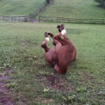 Once a horse gets a tranquilizer their head gets awfully heavy. They often end up putting their head almost on the floor. Here’s Centanni…so sleepy she can’t even keep her tongue in her mouth!