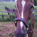 Ha! ha! Cartwright was eating some REALLY tall grass when I went to bring him in. I put his halter on and the grass got a little stuck! No worries, I fed it to him instead! YUM!