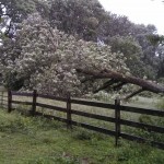One trunk went one way, and the other trunk went the complete opposite way. Took out our fence AND the neighbors. Oops. Now the cleanup begins (thanks John!!). Anyone want firewood?? Its FREE!