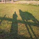 I was turning Patty out the other morning and when I saw our shadows, it looked like we were walking on stilts. I just thought it looked funny so I took a pic. What a circus act!
