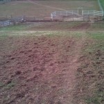 Now that the horses are shedding, they love to lay down and scratch all the hair off of them. There are a bunch of white patches all over the field where Delilah scratched her back!! 🙂