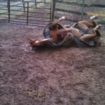 Well it looks like Delilah had some fun rolling around in the mud yesterday! At least the big horses are wearing blankets and stay SOMEwhat clean. Uh, Jen (Delilah’s mom) where ARE you?????????