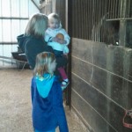 Mia (the one being held) ALWAYS wants to go visit the “nays” when she comes over. So the kids all came out for a visit while I was feeding. They brought carrots so the horses LOVED it!