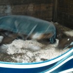 Cartwright has had some shoulder pain this past week and is on stall rest. Now that he can get up and down, he is enjoying his new shavings.
