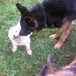 I’ve been trying to get a “perspective” picture so you can see just how teeny tiny Toula really is. So far this is as close as I can get. Maverick only weighs 22 lbs. Toula is only 4. Her little … Continue reading