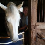 Captain enjoying a good grooming…..gotta keep that big white horse white!