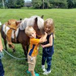James’ aunt and uncle decided to see if he liked playing with the horses. James didn’t skip a beat helping me get ready so Chevy could give him his very first pony ride! Great job James!