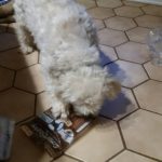 We found new bones for Mav and the are THE BOMB!! A resupply came yesterday (just in time cause he ate the last one the night before). Here he is opening his new package. He’s SOOO excited that they came!