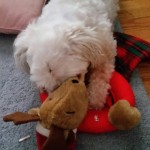 Mav thinks that anything stuffed animal-ish is his new toy. so we run around the house whimpering at all the Xmas decorations this time of year. Can’t wait to put these away!!! 🙂