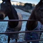 Not much happening on the farm these days. Winter ensures we slow down a bit. Here are two of my big kids just hanging out waiting for me to give ’em dinner!
