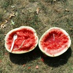 What do you do when you live in the country and you get hungry? Well duh….you drop a watermelon on the ground to split it in half, plunk down indian-style and grab a spoon of course! YUM!!!!