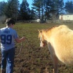 Robbie took his first lesson! Here he is walking Delilah to the barn and learning how to groom her. Good job Robbie!!