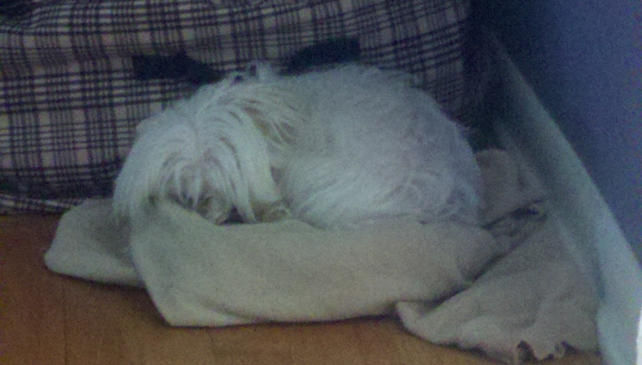 Toula (aka “speck”) is back!! Remember, she’s just 4 lbs. To give you an idea of how small that is, notice that she’s no taller than the bottom trim on the back door!!! She’s so cute!!